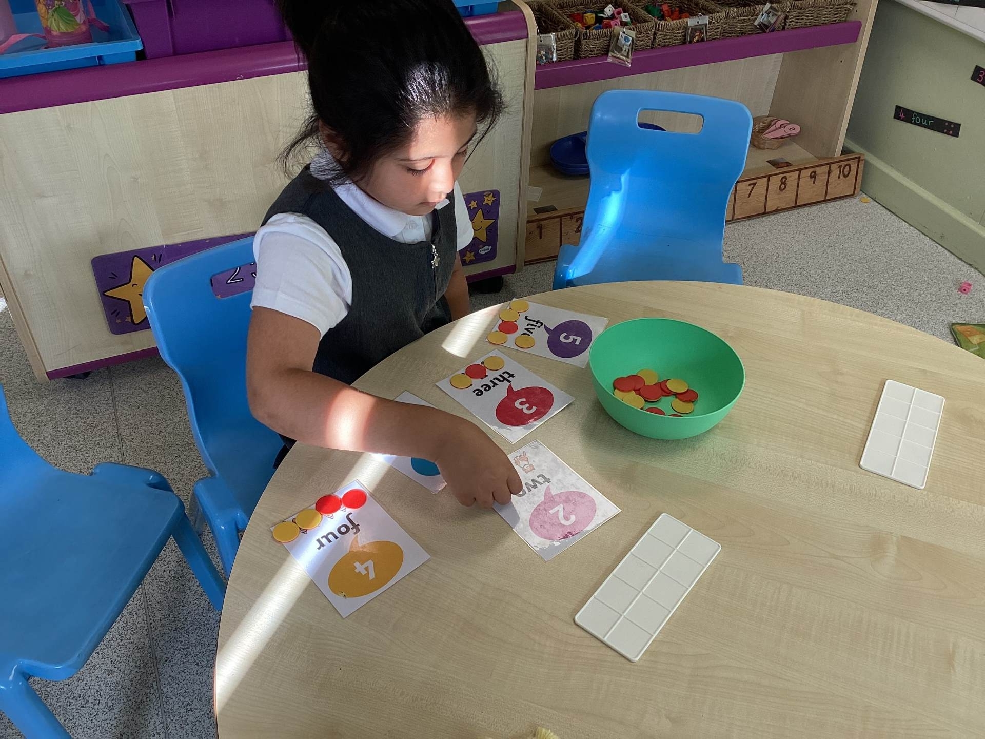 We will know how to orally count forwards and backwards to 10. We will know how to count accurately 5 objects and know how many we have counted. We will know how to sequence three objects by size. We will know how to subitise to 5. We will know how to read and write the numerals to 5 and explore different ways to represent sets with up to 5 objects.