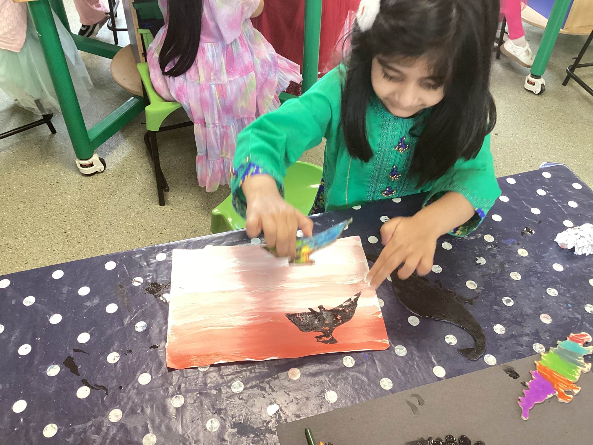 As artists we will know about the technique of printing. We will use printing to create pictures. We will also know about tones of colour exploring adding white to see what happens. We will be visiting the STEAM Hub to use what we have learnt to create a dinosaur silhouette sunset.