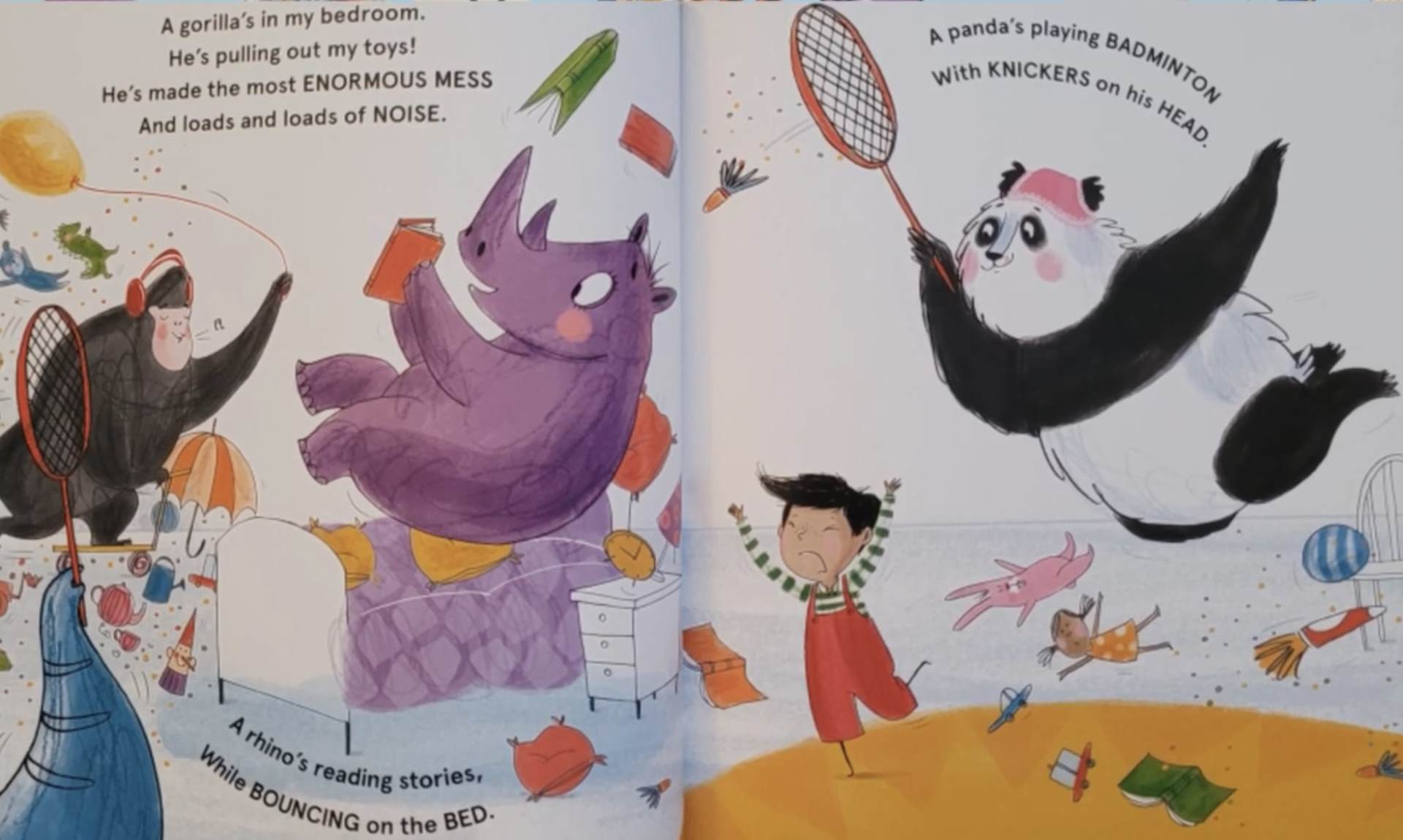 Where were the gorilla, rhino and panda and what were they doing?