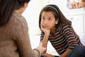 This girl is looking at her friend whilst she is talking. She is listening to what she is saying and waiting for her turn to talk.