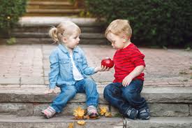 This little girl is offering someone her apple.