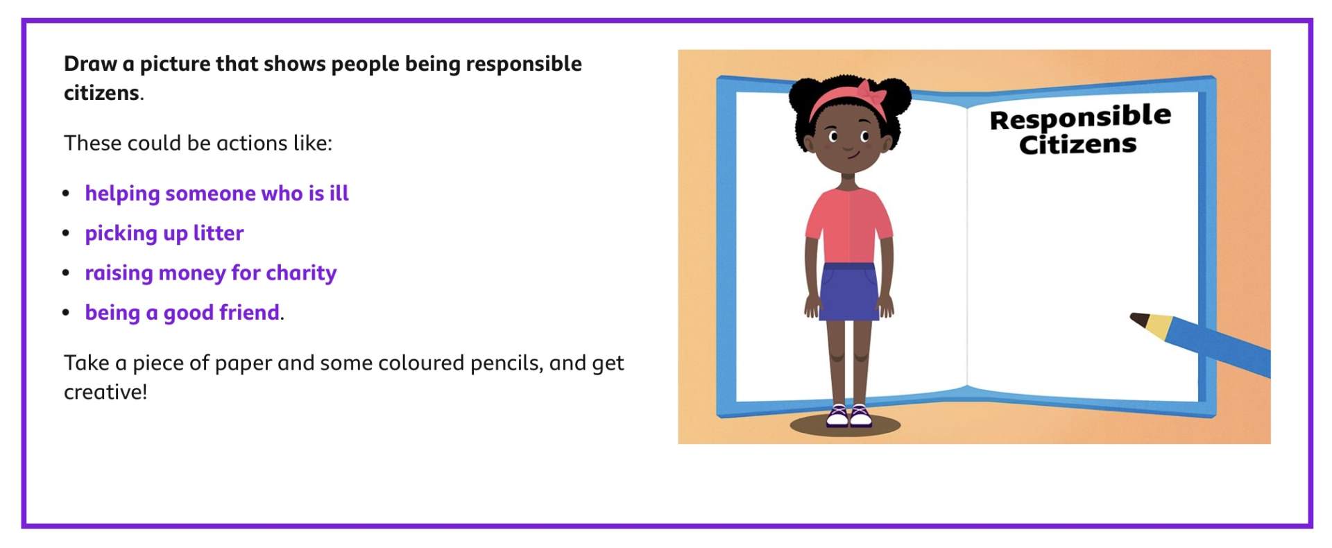 Use those words to describe the people in the pictures and which one shows a good citizen?