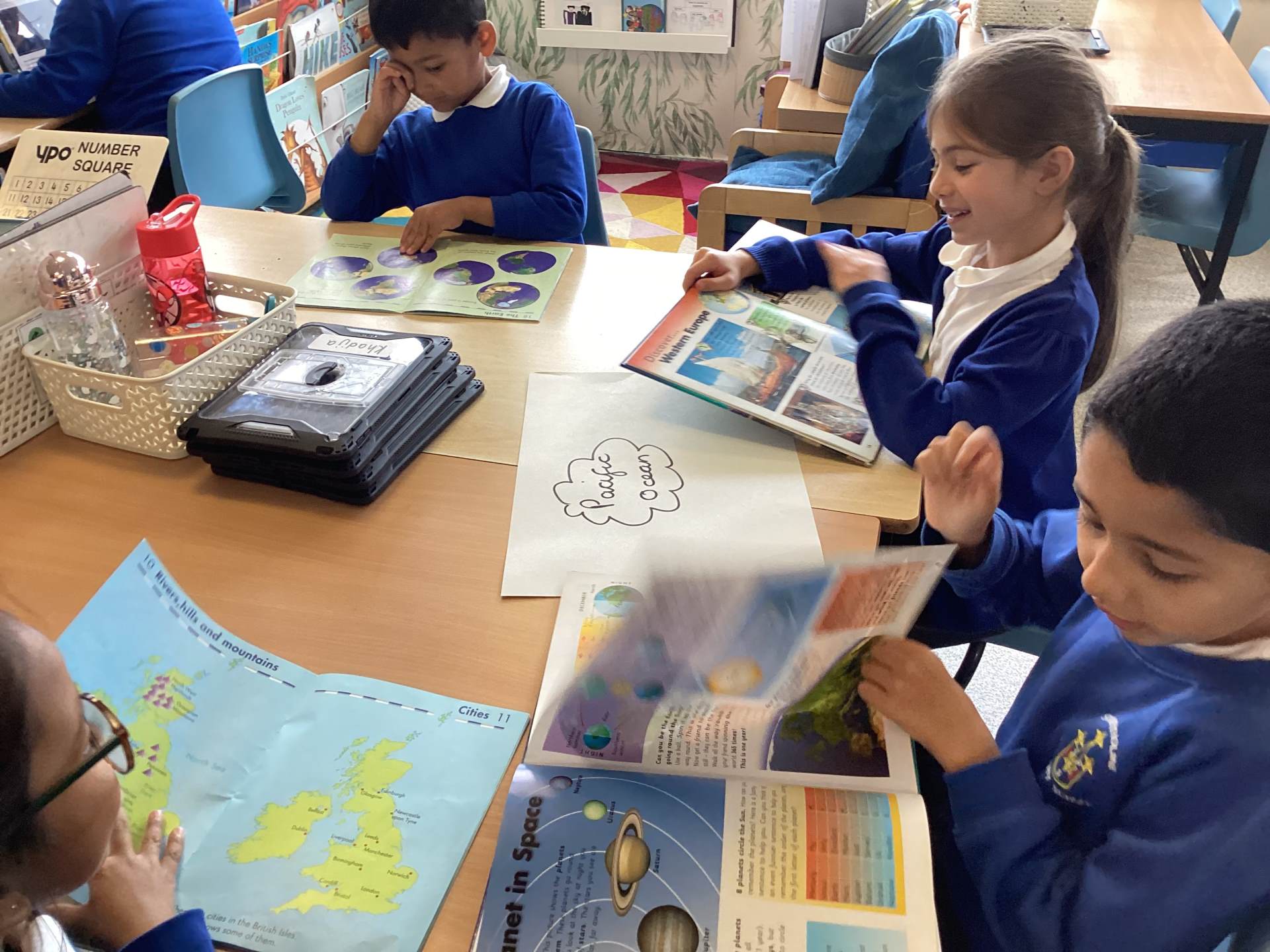 Year 2 have been be learning all about the continents and oceans of the world. The children have explored maps and globes, locating the seven continents and five oceans, and discovered interesting facts about each one. They have been singing songs to help remember their names and using atlases to find different countries.