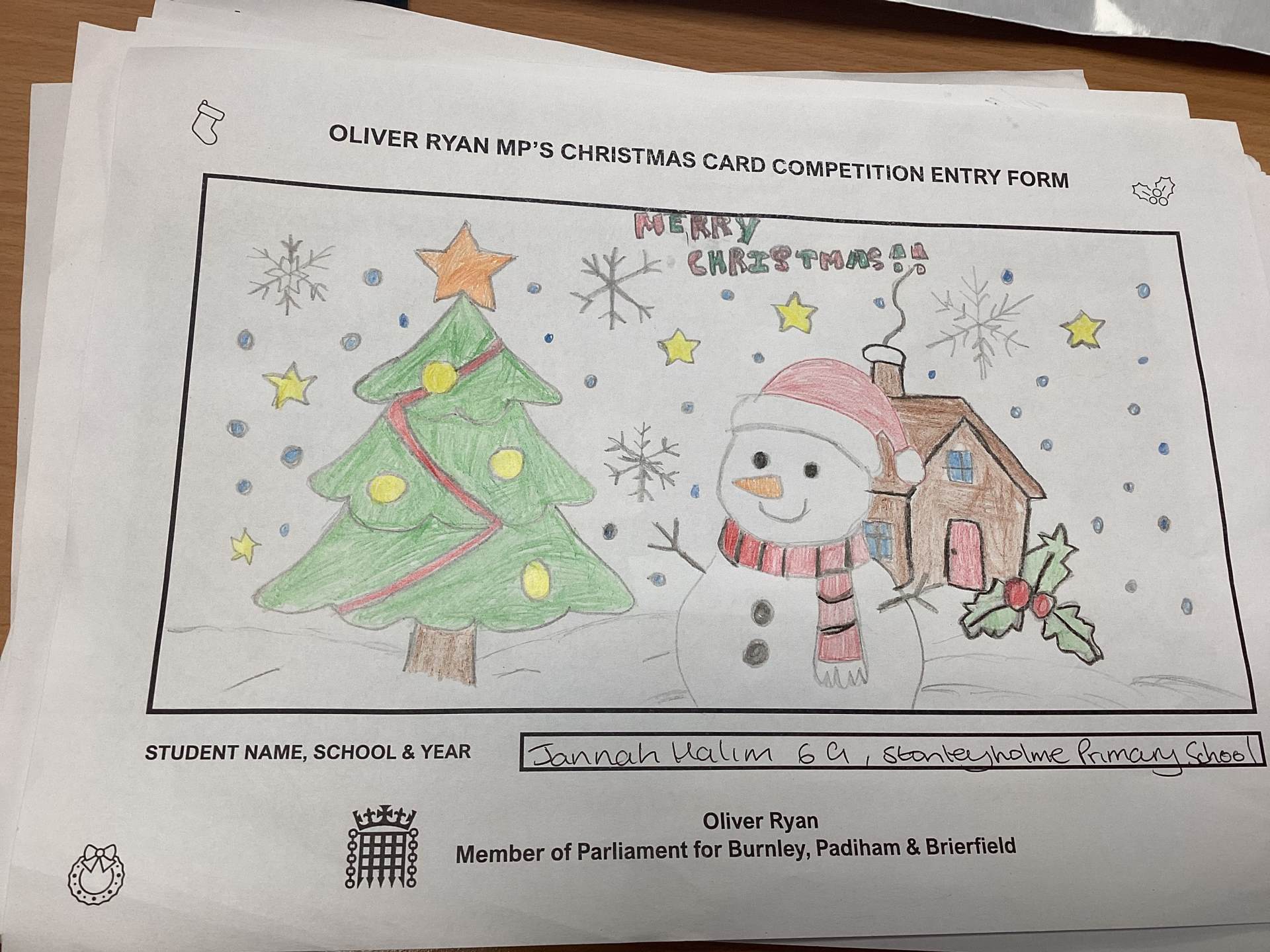 Oliver Ryan's Christmas Card Competition.