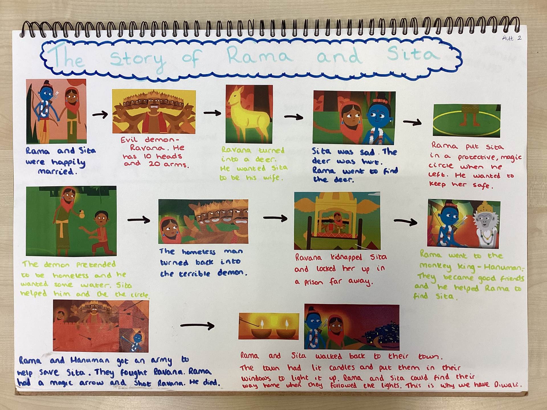 In Year Four, the children learnt what the story of Rama and Sita teaches Hindus about good and evil, and how celebrating the festival of Diwali reflects these beliefs.