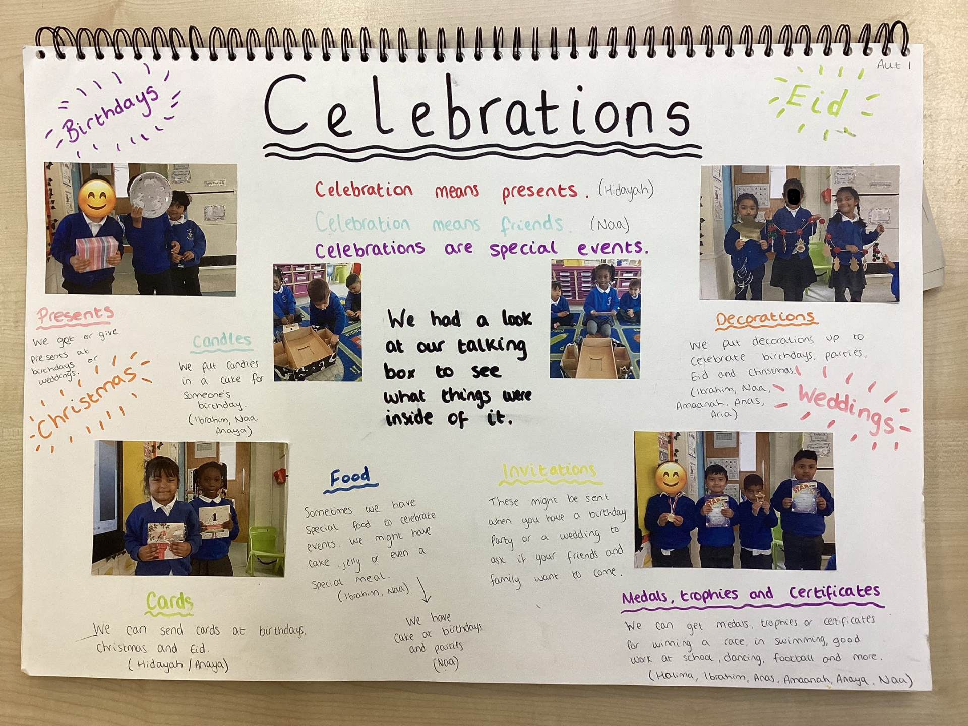 In EYFS, the children have been learning about how and why we celebrate Diwali, Harvest, and Christmas. Their focus has been on the concept of diversity, exploring and comparing the different ways people celebrate special occasions. The children have discussed traditions, foods, stories, and symbols linked to each festival, helping them develop an understanding that celebrations can be similar or different depending on cultures, families, and communities.