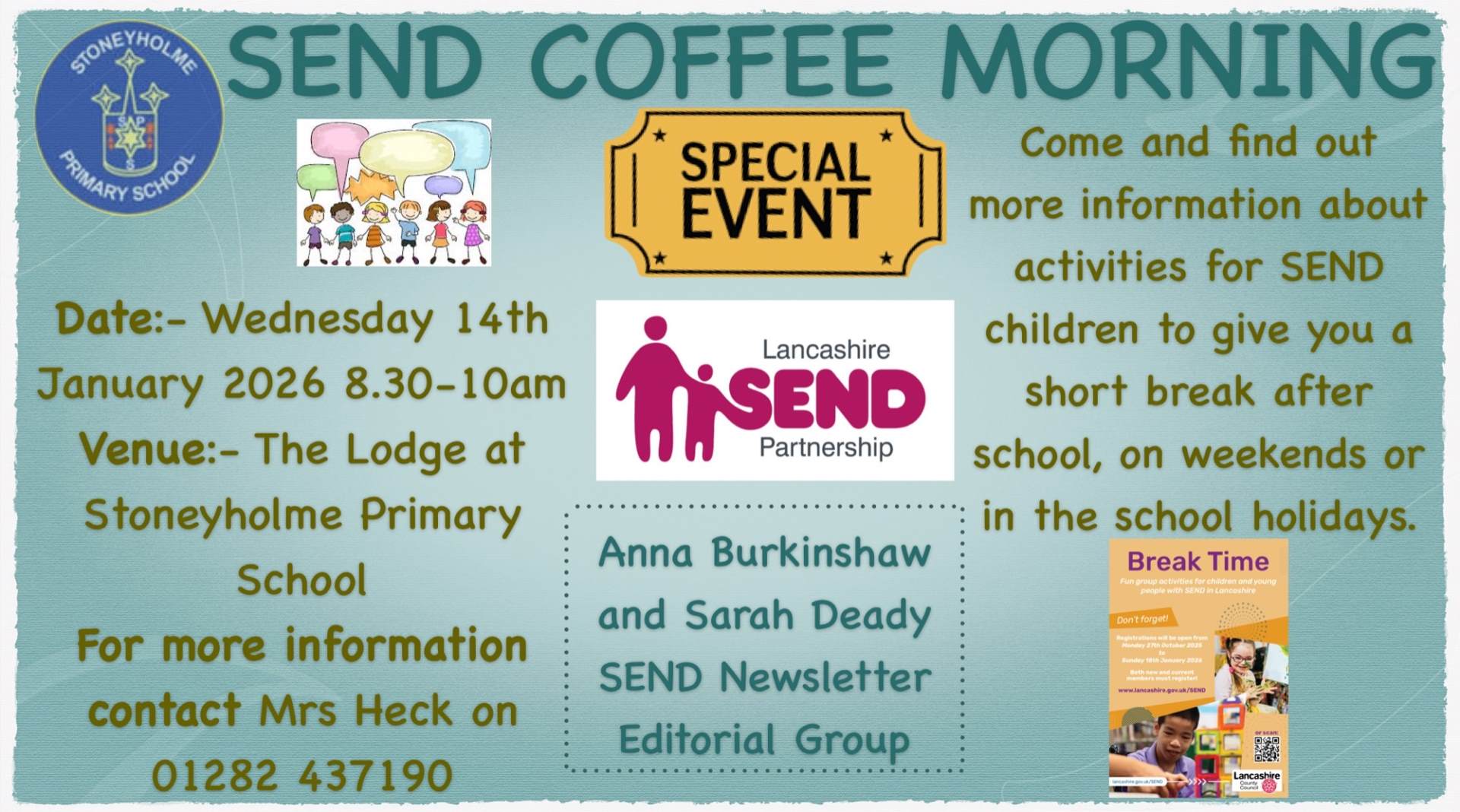 Every Tuesday 8.30- 10am we have a Coffee morning / SEND drop in where parents can chat to Mrs Heck.