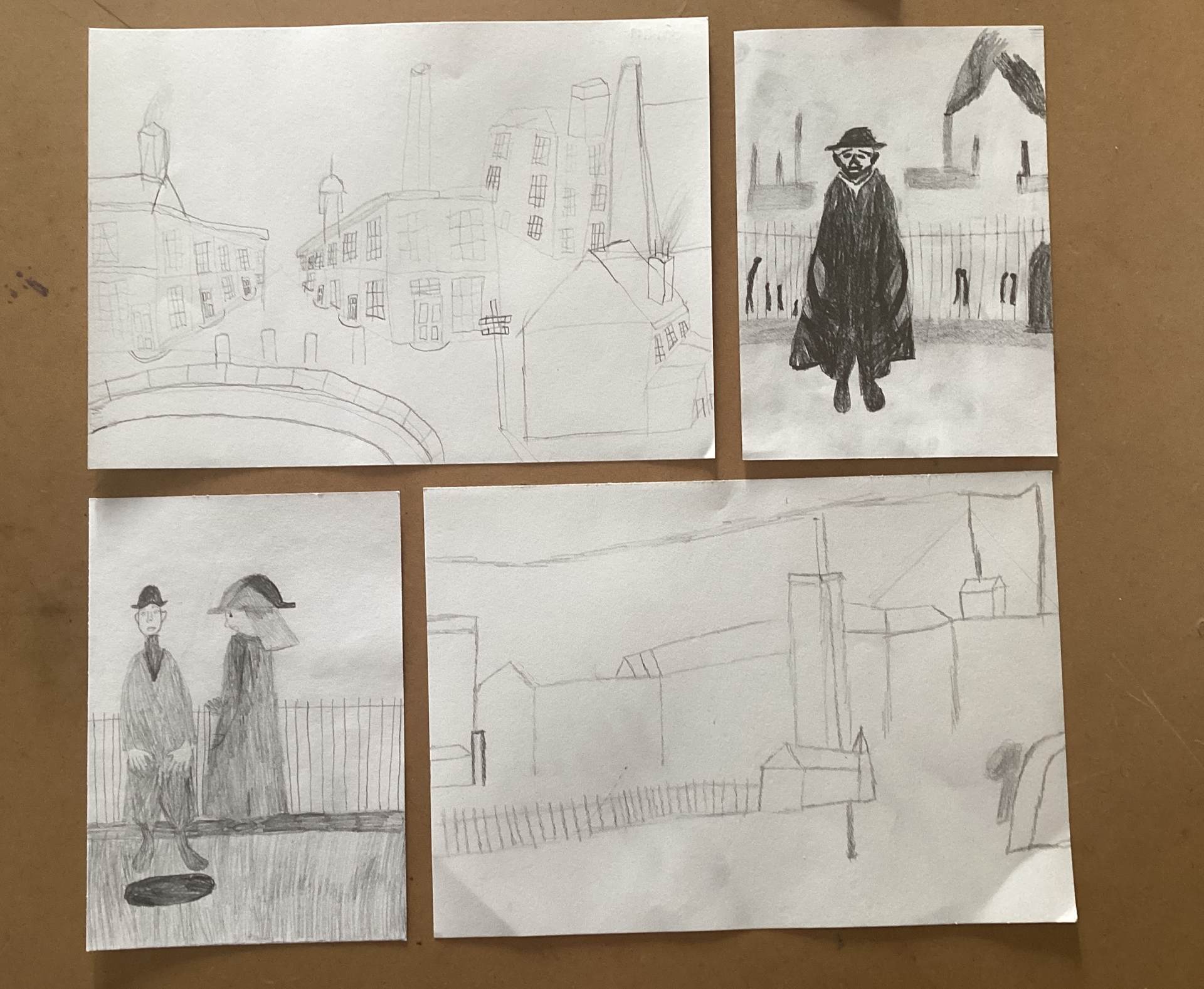 In learning about the work of L.S. Lowry, we will explore how he painted scenes of everyday life in industrial England. We will study his unique “matchstick” figures, use of muted colours, and simple style. We will also create our own Lowry-inspired artwork, showing people, buildings, and movement in busy town scenes.