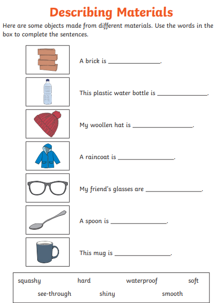 Look at the material and write down the properties. Use the keywords on your worksheet to help you