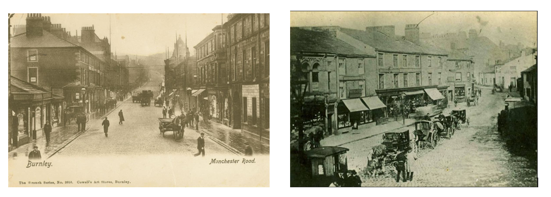 Can we identify similarities and differences between Burnley high street in the past and present?
