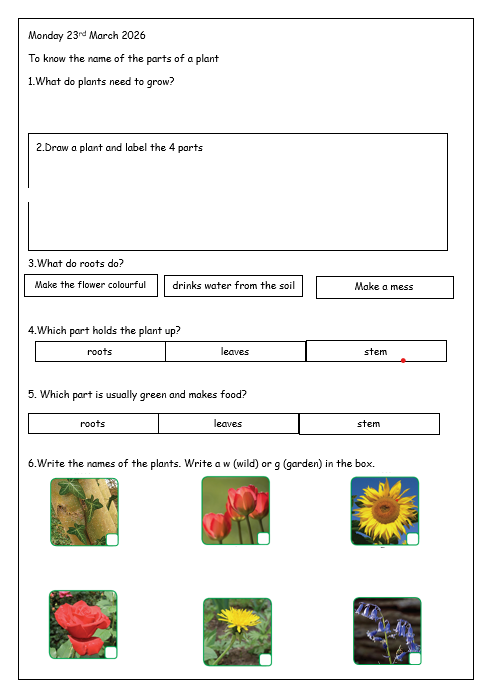 Can we identify and describe the simple parts of a variety of flowering plants?