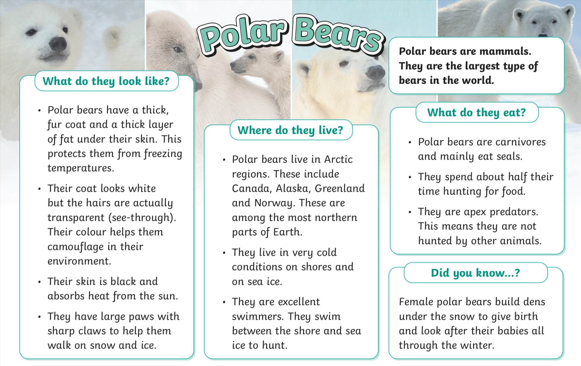 Work with your team to research if polar bears are suited to live in a hot desert.