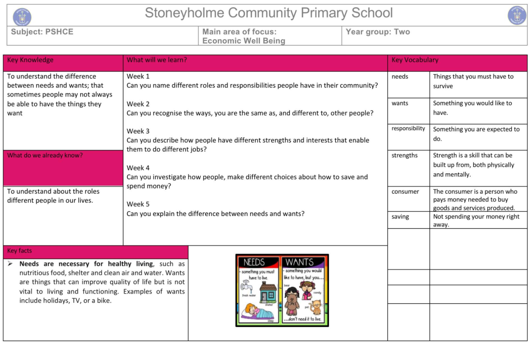 This half term, Year 2 will be learning about economic wellbeing by exploring the differences between needs and wants, the roles people have in their community, and how we make choices about spending and saving money. Children will also think about their own strengths and how people use their skills in different jobs. Through discussions and activities, they’ll learn how to make thoughtful decisions that support healthy and responsible living.
