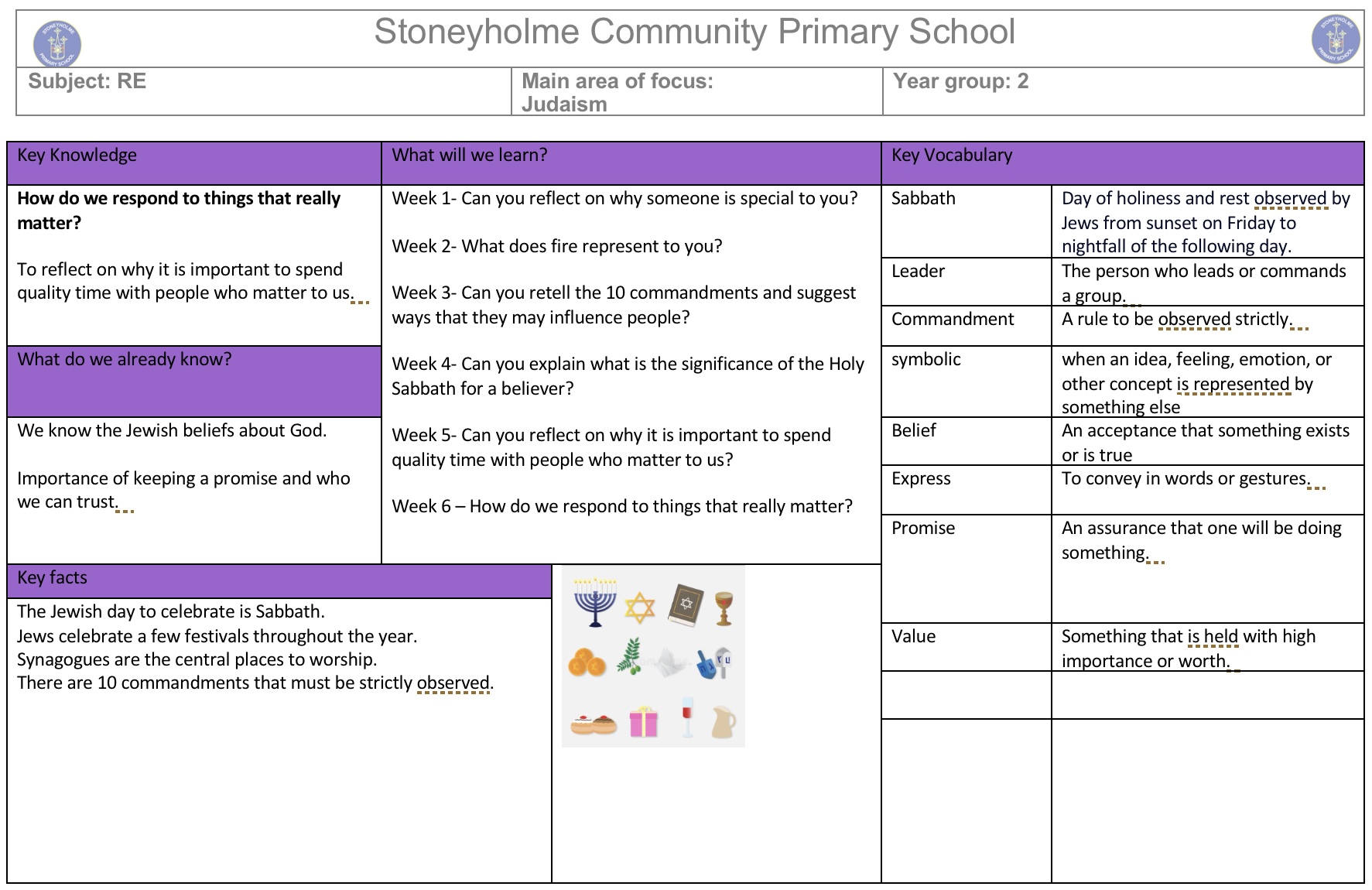 This half term, Year 2 will be learning about Judaism and thinking about what truly matters to us. We’ll explore the importance of special people, keeping promises, and spending meaningful time with others, as well as learning about the Sabbath and the 10 commandments. Through stories and discussion, children will reflect on their own values and what helps guide their choices.