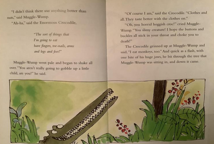 Can you find any adjectives (describing words) that Muggle Wump uses to describe The Enormous Crocodile with?