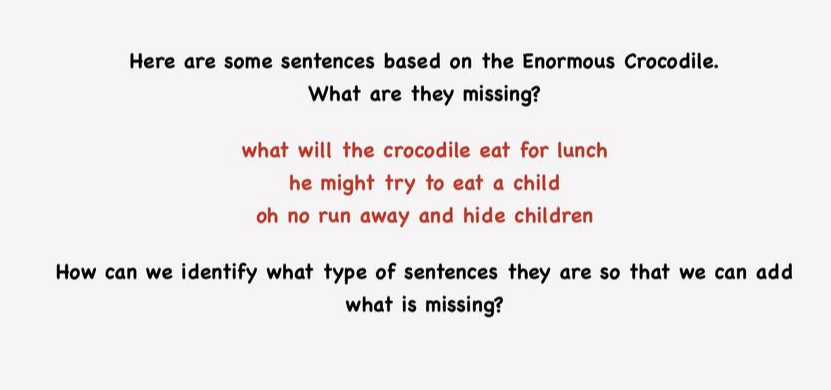 In your books write down what each character would like to happen to the Enormous Crocodile?