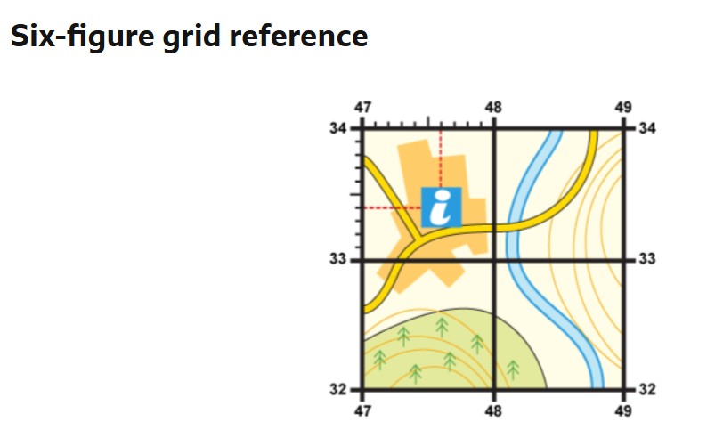 - You now have a six figure grid reference. In this instance, the tourist information office is located at 476334.