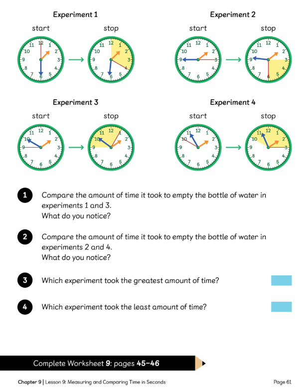 L.C: To be able to measure and compare time in seconds using an analogue clock.
