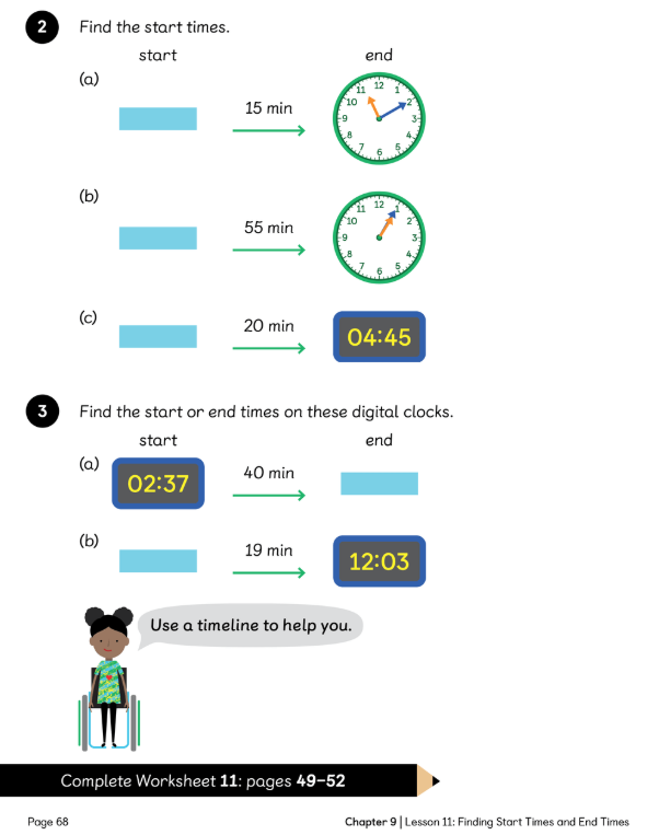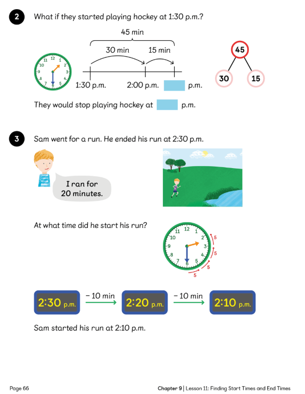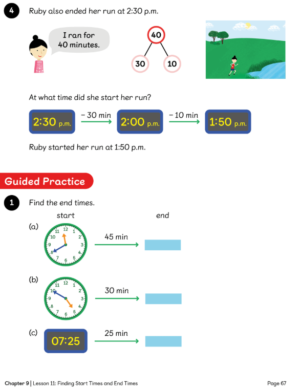 L.C: To be able to find start or end times for events given the duration in minutes.