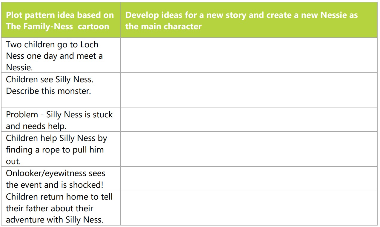 This is the plot pattern for our story. We will create different ideas for new characters, a new problem and resolution.