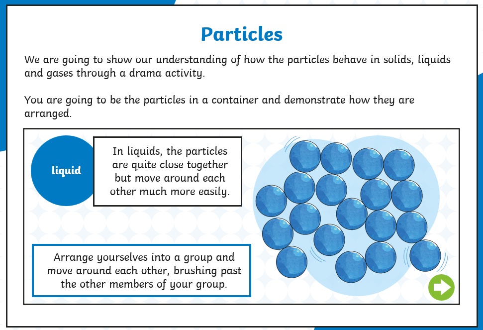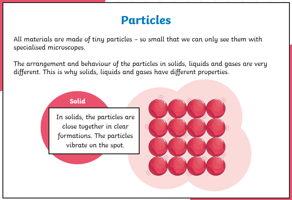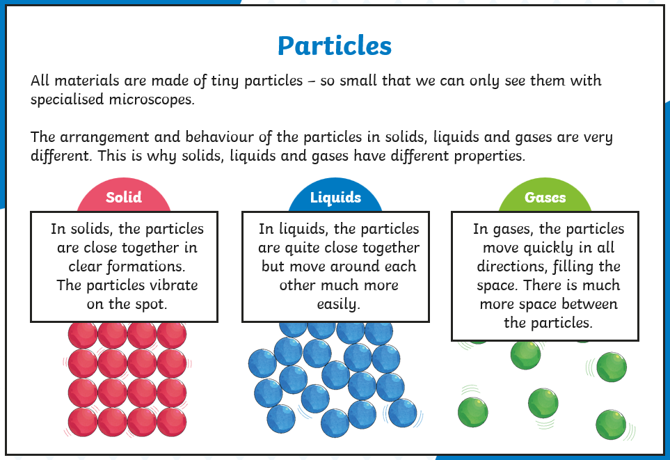 Draw the particles for solid, liquid and gases.