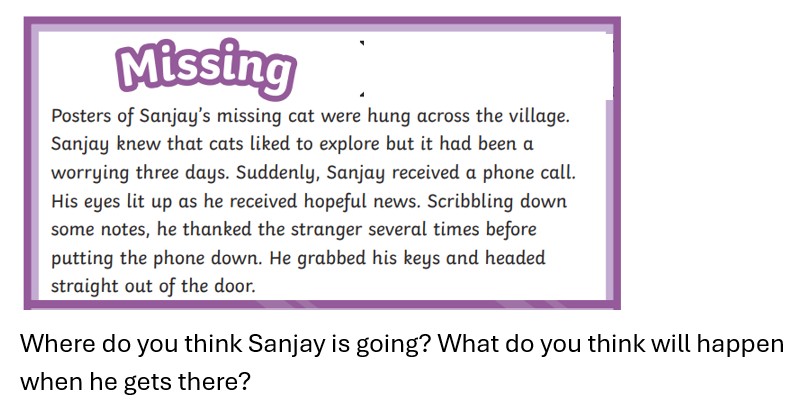 Now we will work together and think about our responses to these questions to help us make predictions. Remember - your predictions may be different to someone else's. As long as you have used the evidence in the text, that is fine.