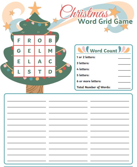 How many different words can you make with the letters in the grid on the tree?
