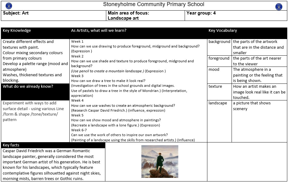 As Artists, we will be creating landscape paintings inspired by the artists Casper David Friedrich and Mondrian.