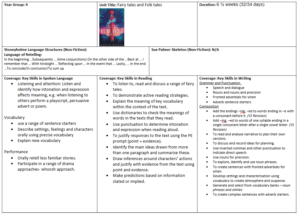 As Writers, we will listen to, read, and discuss a range of traditional fairy tales, exploring their common themes, settings, and character types. Building on our understanding of story structure and style, we will then plan and write our own version of the Rumaysa story, developing creativity by innovating a new character to replace Cordelia the Witch. Through discussion, planning, and drafting, we will refine our ideas, enhance our descriptive writing skills, and produce an imaginative re-telling that reflects both traditional and original storytelling elements.