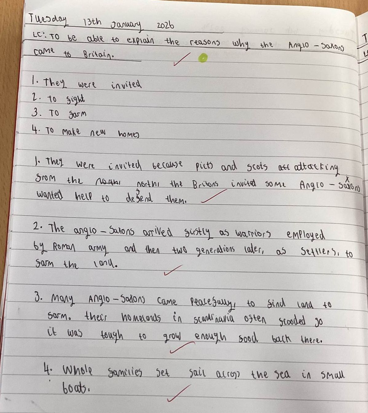 As historians, we will be continuing our learning about groups of people who have invaded and settled in the United Kingdom. This term we will learn about the Anglo-Saxon Age in Britain which was from aroundAD410 to 1066. We will explore the impact that the new groups of settlers had on society. We will be using primary and secondary sources of information.