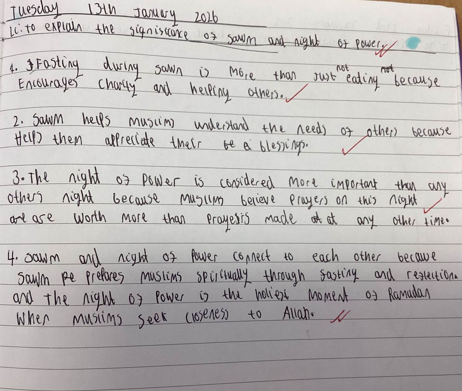 As theologians, we will learn what commitment means and how people show dedication to their faith. We will learn about the Five Pillars of Islam, focusing on the fourth pillar, Sawm – fasting during the month of Ramadan. During Ramadan, Muslims fast to show self-control and to remember people who do not have enough food. We will also learn about the pillar of Zakat – giving to charity, which helps support people in need, especially during Ramadan.