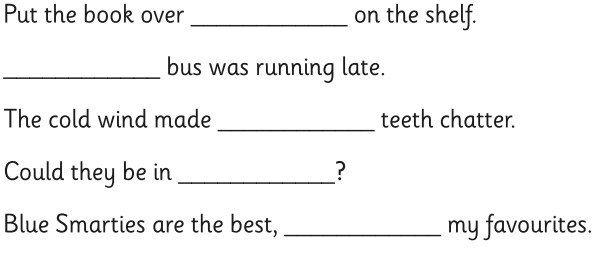 Complete these sentences with the correct word - there, their or they're.