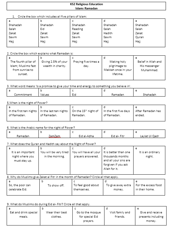 End of Unit Assessment.