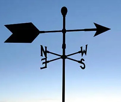 A wind vane, also called a weather vane, is an instrument that shows the wind direction. When the vane points north, it means the wind is coming from the north.