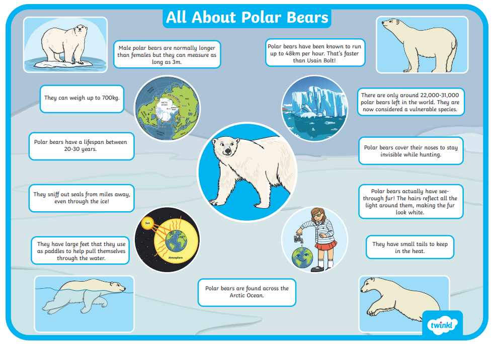 E.g: a statement into a question from the facts collected- Polar bears are really strong swimmers. – Are polar bears good swimmers?