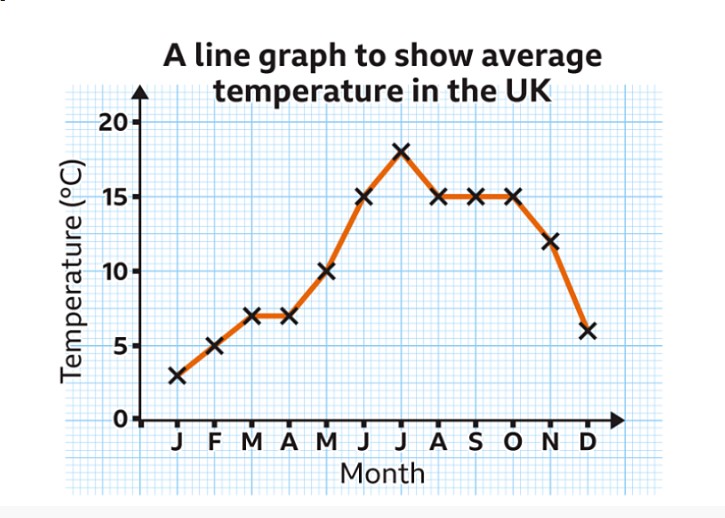 Complete the line graph by showing the temperatures from your table as a dot in the correct place for each one, then join the dots with lines using a ruler.