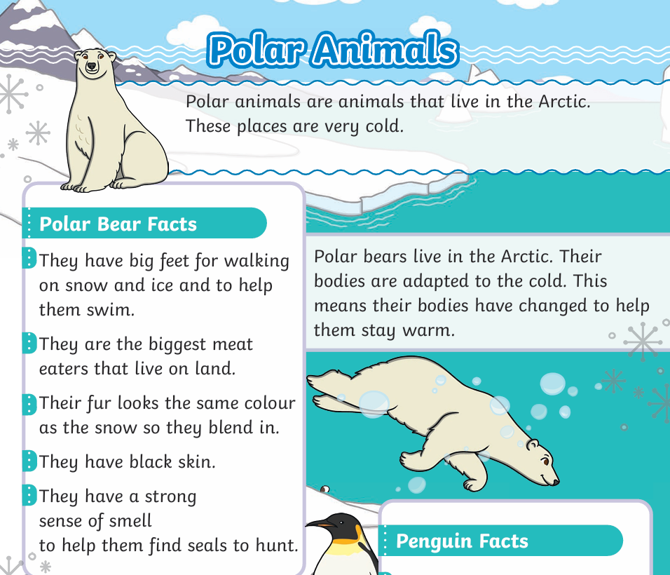 Using the fact file about polar bears create questions with two incorrect answers.