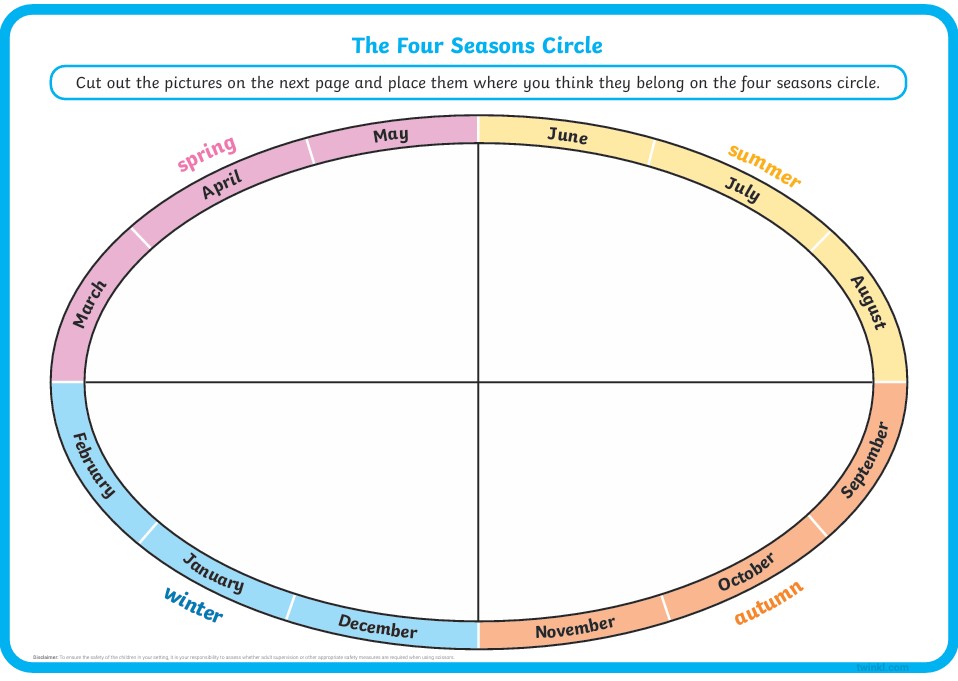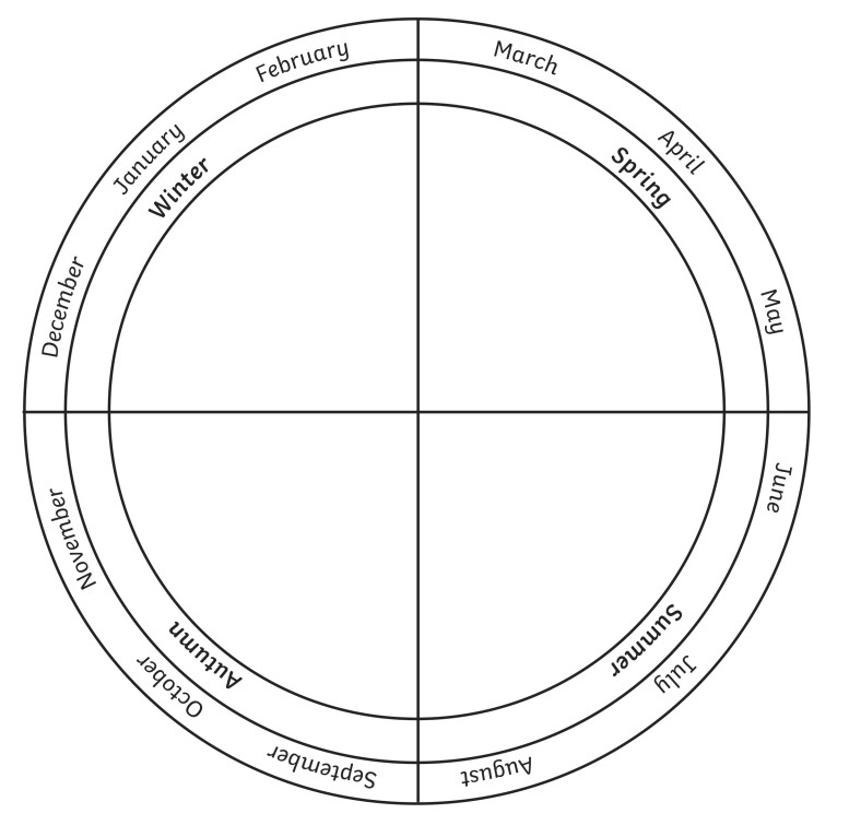 In each section of the season wheel, write about the features of each season in the United Kingdom, and how each season affects our lives. Refer to activities, clothing, food types, animals and day light hours.