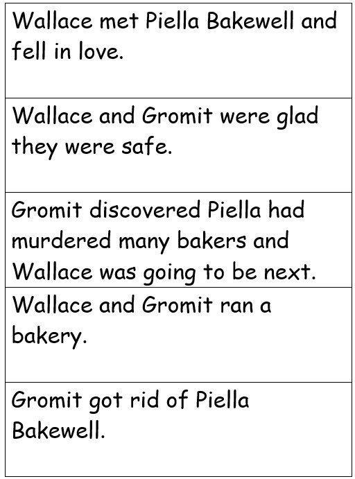 Read these sentences with your teacher, then put them in the order that they happened in our story.