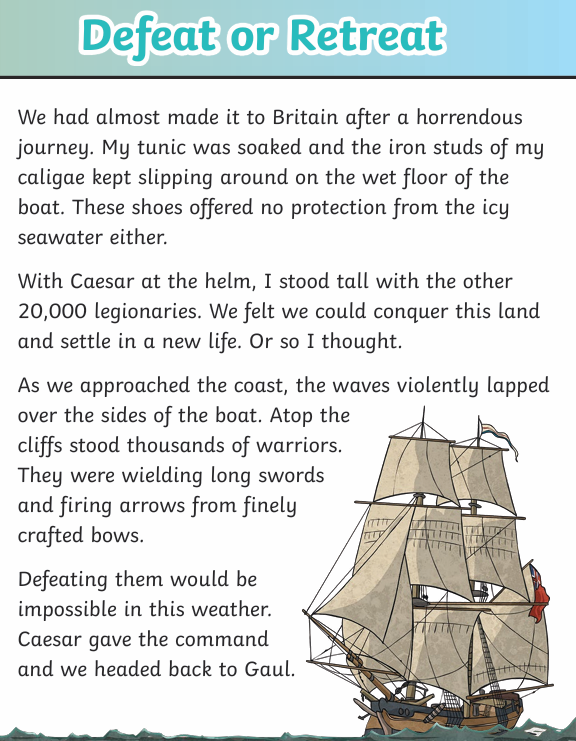 I: Why do you think Caesar made the decision to retreat? Explain your answer.C: Find two words or phrases which tell you that the journey was unpleasant.