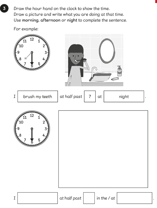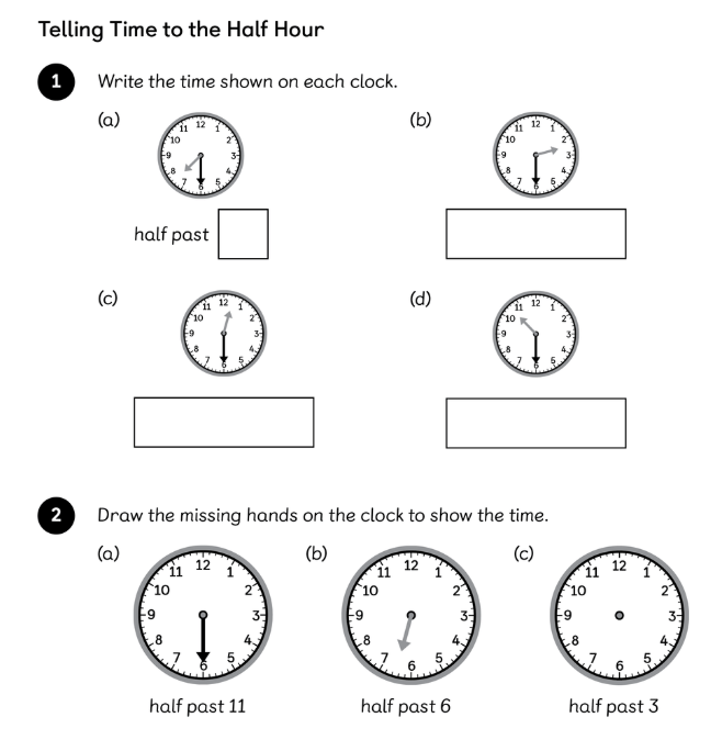 LC: Telling the time to the half hour.