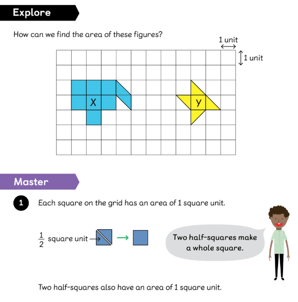 LC: To be able to find the area of rectilinear shapes by counting squares and half-squares.