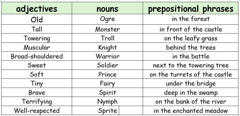 LC: to create effective noun phrases using adjectives and prepositional phrases