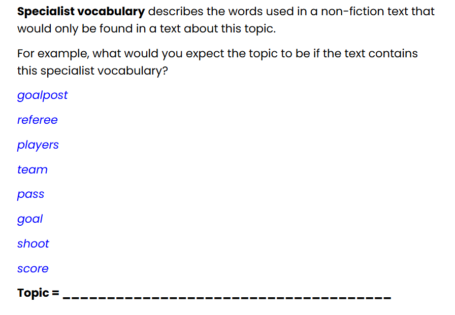 LC: to identify specialist vocabulary in non-fiction texts
