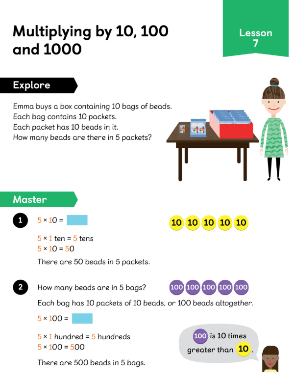 LC: To be able to multiply a single-digit number and 2-digit numbers by 10, 100 and 1000.