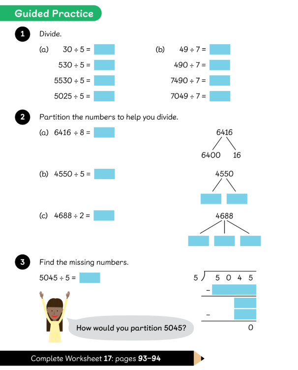 LC: To be able to divide 3-digit and 4-digit numbers by a single-digit number