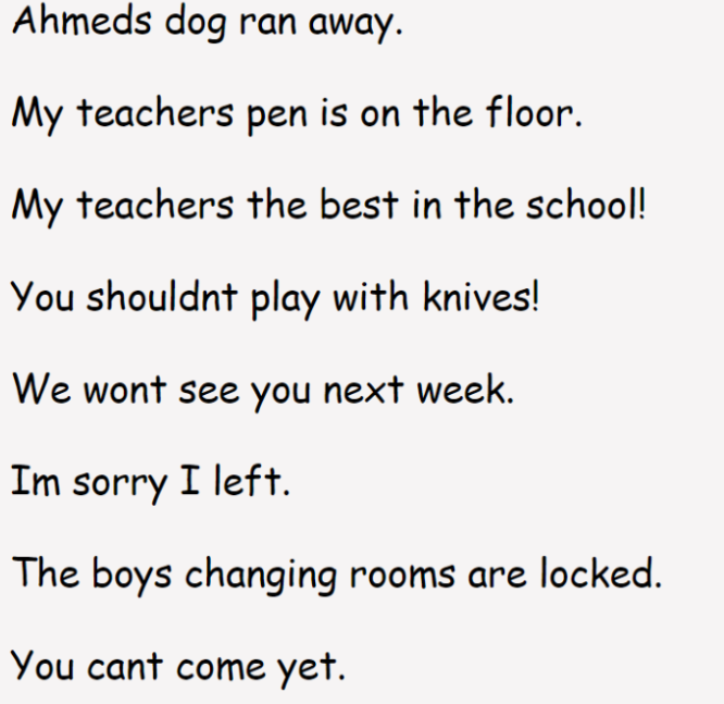 LC: to identify accurate use of the possessive and contractive apostrophe
