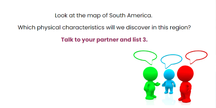 LC: to describe key physical characteristics of a region in South America including rivers, coasts, mountains and climate zones.