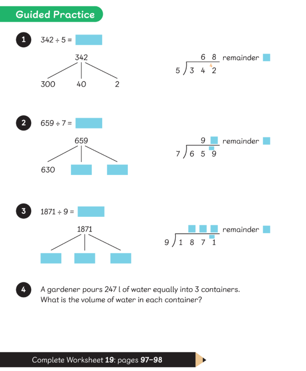 LC: To be able to divide 3-digit numbers by a single-digit number (with remainders)