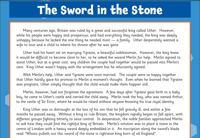 5. Read the paragraph starting 'King Uther was so distraught'. Find and copy a phrase from this paragraph that suggests it would be difficult to remove the stone from the sword.